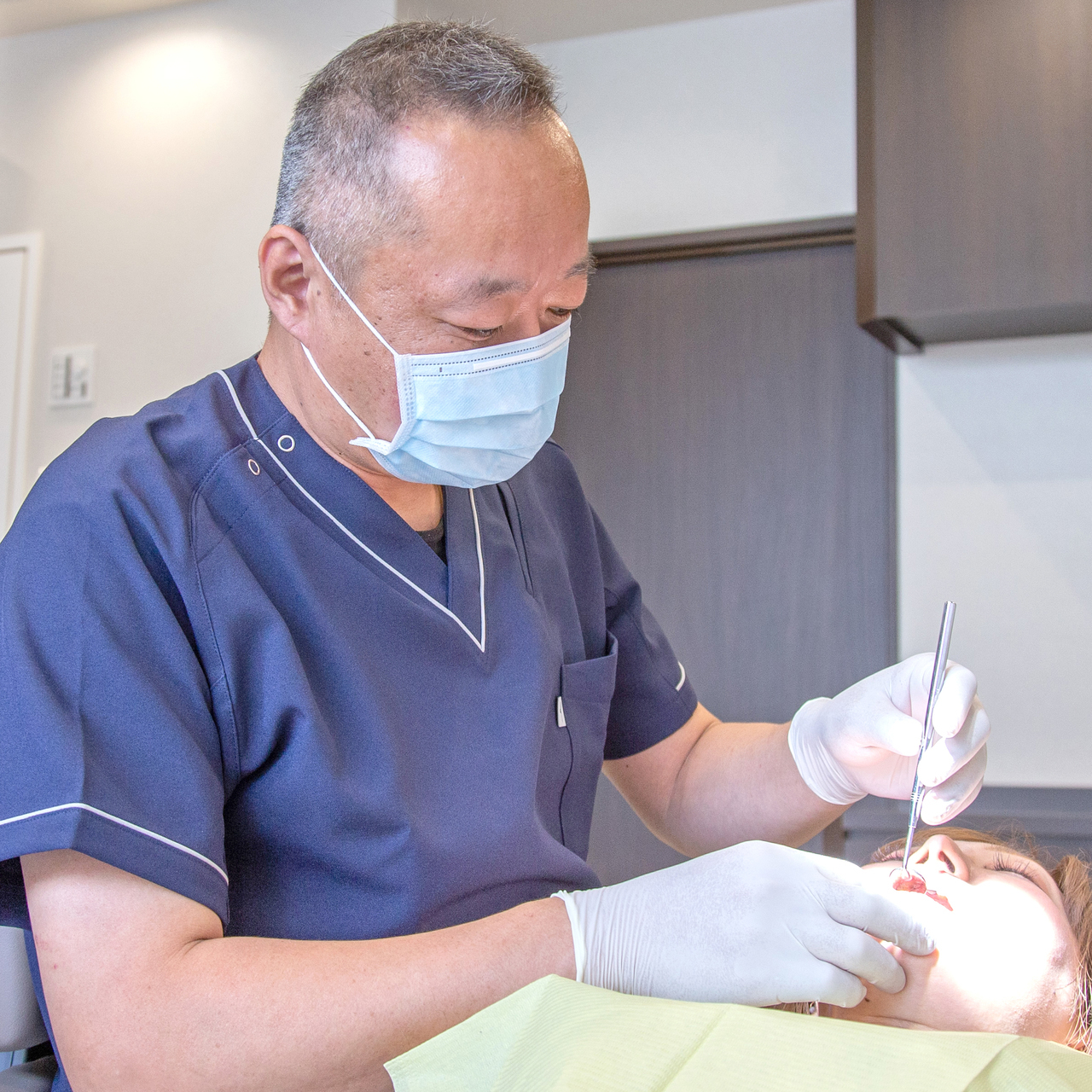 インプラント1000本以上の実績と20年以上の経験を持つ院長が、お口の中を診察いたします。
